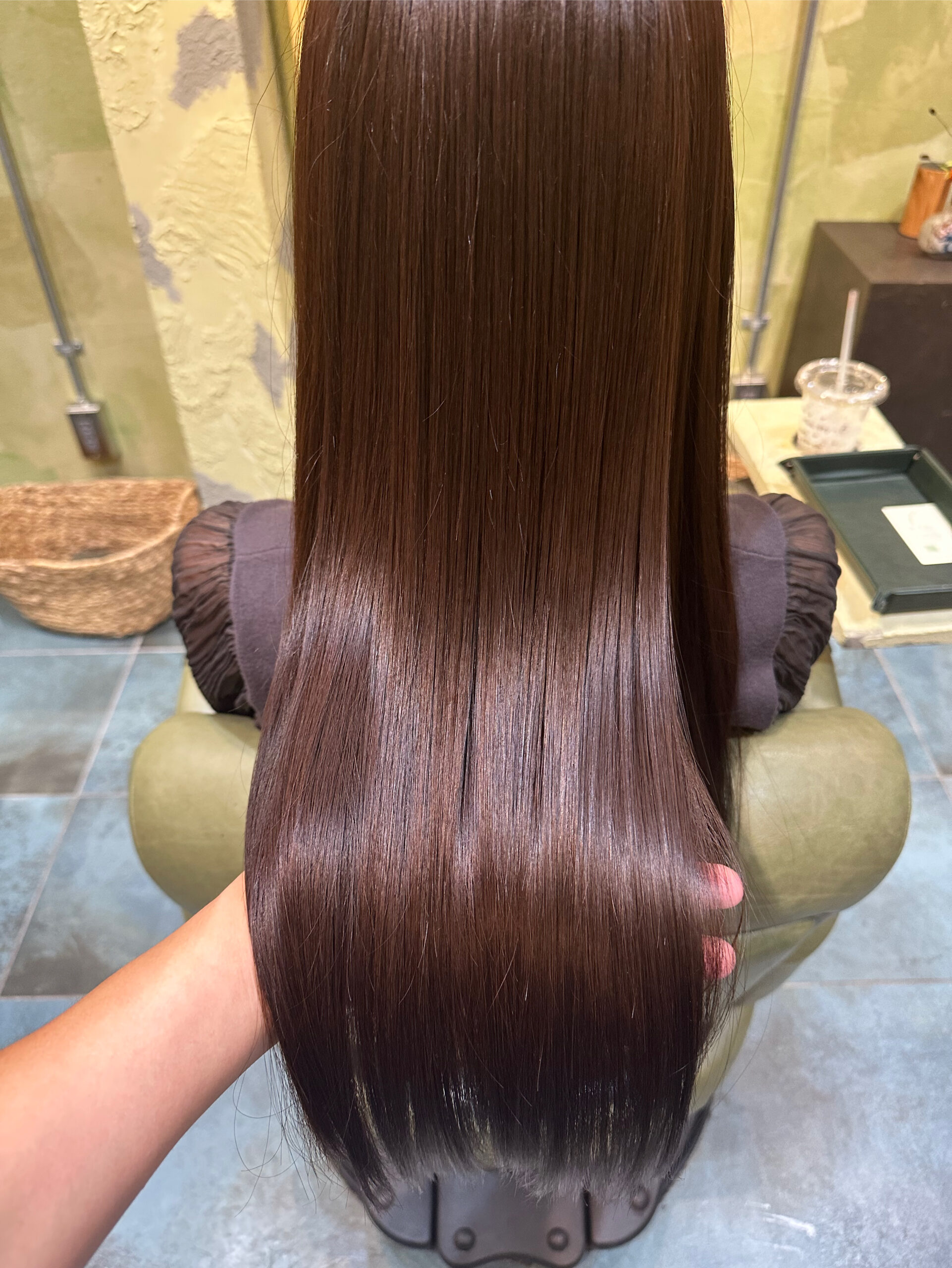 根元から中間のダメージが少ない所は当たり前に艶々になるのですが、毛先のダメージが強く出てパサつく箇所も艶々になります!